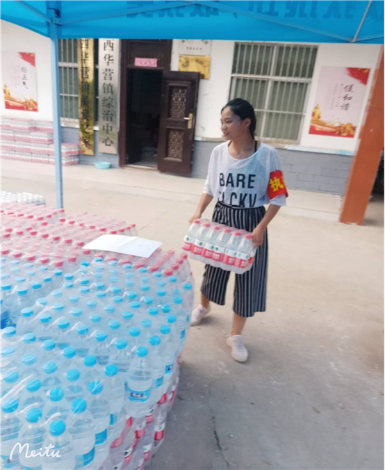王亚亭的家乡西华是泄洪水流经之地 ,洪灾期间,贾鲁河水位不断上涨直至漫堤,附近的村民紧急撤离至西华营安置点避难,一时间人心惶惶。此情此景下,她没有丝毫犹豫,迅速前往当地乡政府参与志愿者服务工作。在志愿服务期间,她主要是负责将社会各界捐赠的物资安全送达安置点,分发给当地村民,通过普及洪灾防范知识来安抚受灾群众的情绪,努力做好后勤工作。她说:“大水无情但人有情,看着从四面八方送来的物资,我的内心很感动,作为一名预备党员,志愿服务对我来说是责任更是义务,尽力而为,全力以赴,希望河南早日渡过难关。”