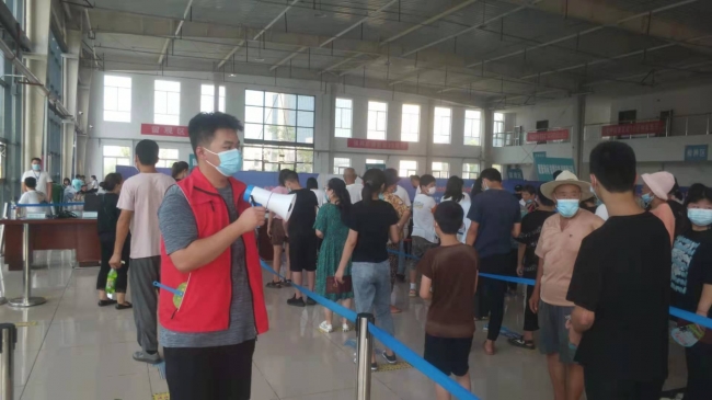 疫情就是命令,防控就是责任,这是一场没有硝烟的战争。为了防止新冠肺炎疫情再次蔓延,政府号召广大人民群众积极接种新冠疫苗,精准抗疫防疫。为帮助家乡顺利开展疫苗接种工作,18级英语本4班学生吕晓捷于8月中旬在安阳市内黄县张龙乡新冠疫苗临时接种点进行志愿服务,主要负责疏导群众有序接种、检查口罩佩戴情况等,热心提供帮助,耐心解答问题。在参与志愿服务期间,张龙乡新冠疫苗临时接种点有1200针剂,接种人数比以往都多,好多人早早地来到接种大厅门前等待。为确保安全距离,提高接种效率,他与其他志愿工作者们一起引导居民排队,安抚群众焦急情绪。虽已立秋,天气依旧炎热,记得队伍中有一位老人关心地问:“孩儿多大了?看着你还小呢,热不热啊?”听到这话,他笑着说:“21了,不热!”然后带着这份关怀和暖意继续投入到工作中去。志愿服务是辛苦的,但能够得到大家的尊重与理解,他感觉一切都是值得的。他说:“能够参与志愿服务工作,我感觉很充实。国家有难,身为青年大学生,我更应当冲锋在前。今后,我还会在国家有需要的时候担起责任,回报国家,回报社会。”