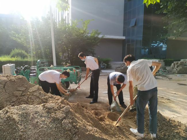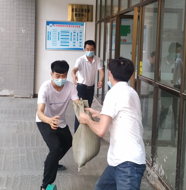实验室管理处第一时间安排部署防汛期间值班人员和岗位职责衔接等工作,要求值班人员履职尽责严格执行24小时值守制度,加强巡查防守。并要求各位工作人员既要一线防汛抢险,同时也要做好自我防范和保护,在防汛抢险工作中始终绷紧疫情防控这根弦。