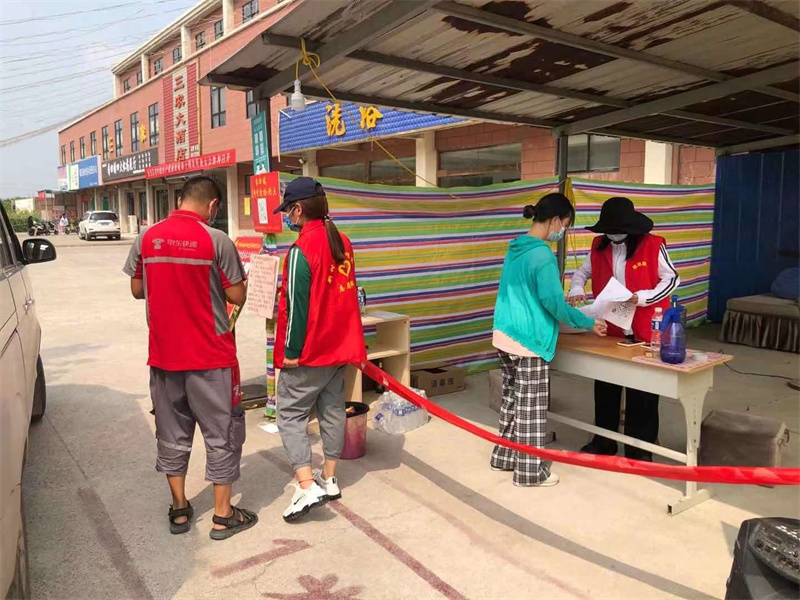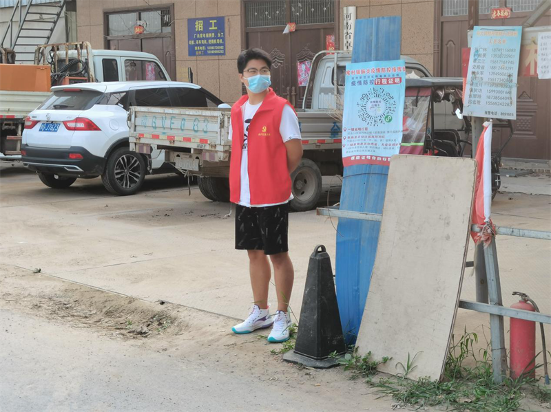 商学院2018级国贸专业本科2班学生邵宗汗, 8月7日参加了长垣市常村镇前大郭村组织的青年志愿服务队,在村口开展疫情防控卡点测温扫码工作,并对外来车辆进行排查,指导司机登记。邵宗汗白天在岗口认真执勤,傍晚仍积极前往村大队部开展疫情期间人员排查表登记工作。