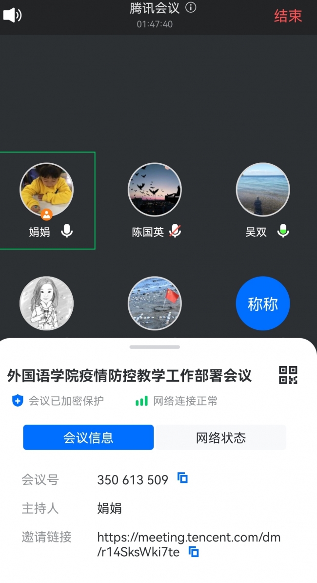 外国语学院疫情防控教学工作部署在线会议现场