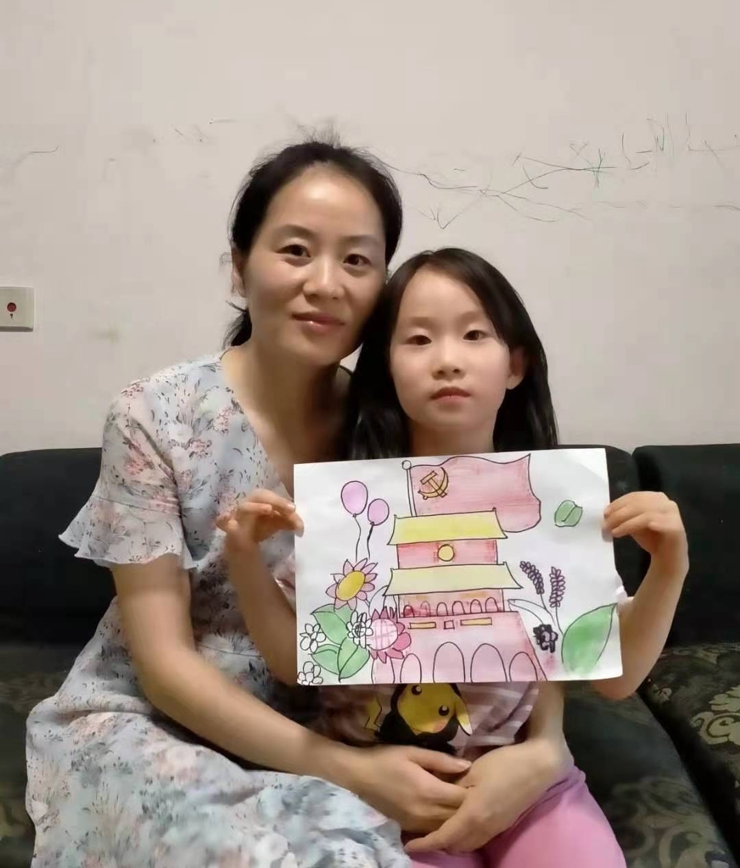 蔡旭明老师亲子绘画作品《向党的百年华诞致敬》