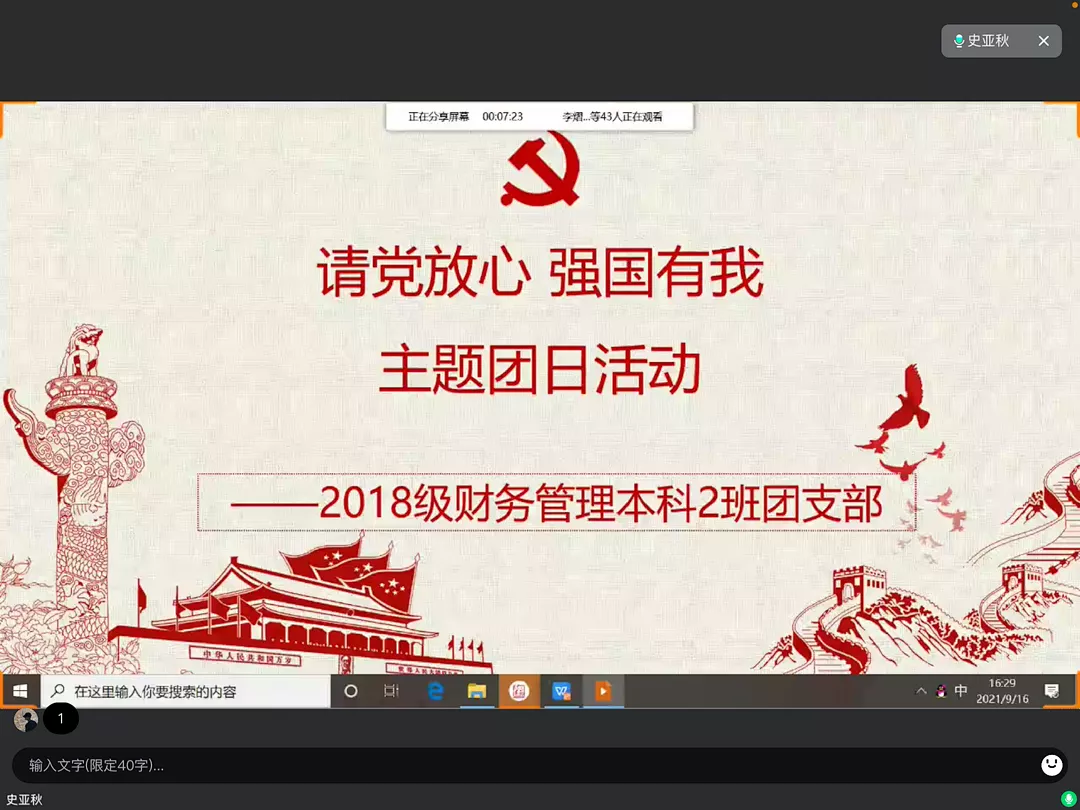 会计学院18级财务管理本科2班团支部开展线上主题团日活动