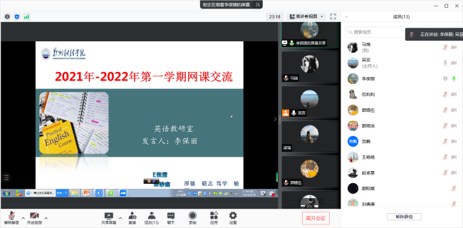李保丽老师分享《综合英语》线上教学示范观摩课