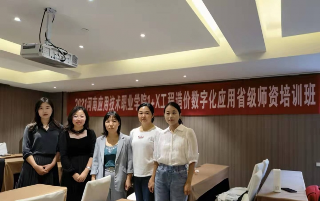 2021年9月22日至28日,土木工程学院土木工程造价教研室主任郑现菊带领专业教师周伟华、高华锋、刘薇、徐楠参加了2021年河南省“1+X”工程造价数字化应用职业技能等级证书师资培训班。