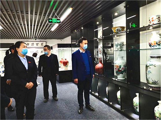 校监事会副主席张彪参观许挺孝文化瓷艺馆