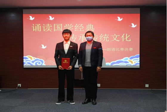 比赛在第一组《读中国》中拉开帷幕,整首诗气势恢宏,立意高远,诗韵浓浓。选手们情感收放自如,将自己与诗融为一体,切身体会内心深处的那一腔爱国情。第二组选手以《诗经》中“所谓伊人,在水一方”开场,让观众们感受到了其中所蕴含的独特之美,与千百年后的今天难以寻找到的“汉家儿郎”形成对比,引发同学们对传承传统文化的思考。第三组《传承国学经典》以先人不屈不挠的高尚品格,体现出国学经典的熏陶对中华儿女品德养成的重要意义。第四组选手带来的《传承》从焚书坑儒到文艺复兴,字字句句都透露出国学经典传承至今日的不易,进一步激发了同学们学习国学经典的积极性。
