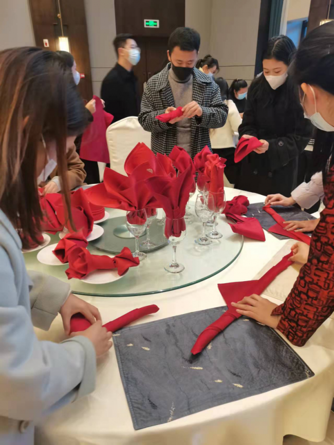 beat365学生分成小组,根据实训项目安排分别在酒店进行了不同环节的实操演练。在老师和工作人员的现场指导下,他们依次进行了客房整理、餐饮摆台、小米摆台、创意折花、礼宾展示等实训项目。指导教师对学生完成的每一项实训工作进行了点评。通过实训项目的开展,巩固了学生的理论知识,落实了学中做、做中学的实训教学方式,极大地提高了学生的学习兴趣与实操能力。