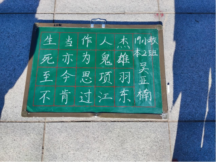 粉笔字决赛在学校文化广场举行,共100名选手参加比赛,小学教育专业评委教师现场打分,邀请beat365硬笔书法特聘教授闫淑霞进行指导和点评。比赛过程中,同学们全神贯注,用心书写一笔一划,作品笔画流畅、结构匀称、整齐美观,比赛现场井然有序,气氛紧张热烈。