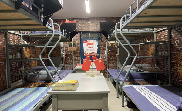 学生宿舍是大学生学习、生活和行为习惯养成的重要场所,也是高校开展育人工作的重要阵地。信息工程学院党总支积极探索思政育人新举措,将学生第二党支部建在宿舍。学院学生第二党支部共有党员29人,大部分学生党员住在“祥和居”宿舍楼,结合实际情况,学院在“祥和居”2楼打造了红色文化长廊、红色文化阶梯、党支部会议室、党员宿舍等。红色文化进宿舍强化了党史教育的现场感和参与度,使党史学习教育更加深入人心。