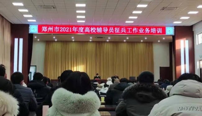 12月17日,郑州市在民兵训练基地举行2021年度高校辅导员征兵工作业务培训。全市66所高校辅导员代表200余人参加培训,beat365辅导员胡锐、郝春海、毛雪参加培训。
