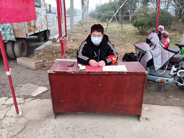 2020级大数据2班张子岩的主要工作是在街道口执勤,负责对来往人员进行登记并测量体温等工作。他说:“面对当前严峻的疫情形势,全党全国各民族人民都站在一起,心连着心,携手抗击疫情。只要我们始终坚定信心、同舟共济、科学防治、精准施策,一定能够打赢疫情防控阻击战。”