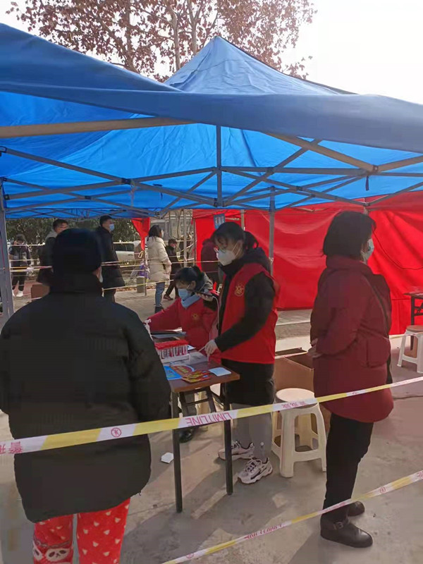2020级计算机科学与技术本科5班刘政亳的主要工作是在核酸检测现场进行登记并维护秩序。新年伊始,安阳突发疫情,了解到相关情况之后,刘政亳主动报名,成为了一名抗疫志愿者。他说:“面对突如其来的疫情,我和我的同学没有选择宅在家里刷视频、玩游戏、看电视,享受难得的假期时光,而是请缨出战,同社区工作者、党员、志愿者一起,坚守在防疫卡点。我相信我们终将战胜疫情!”
