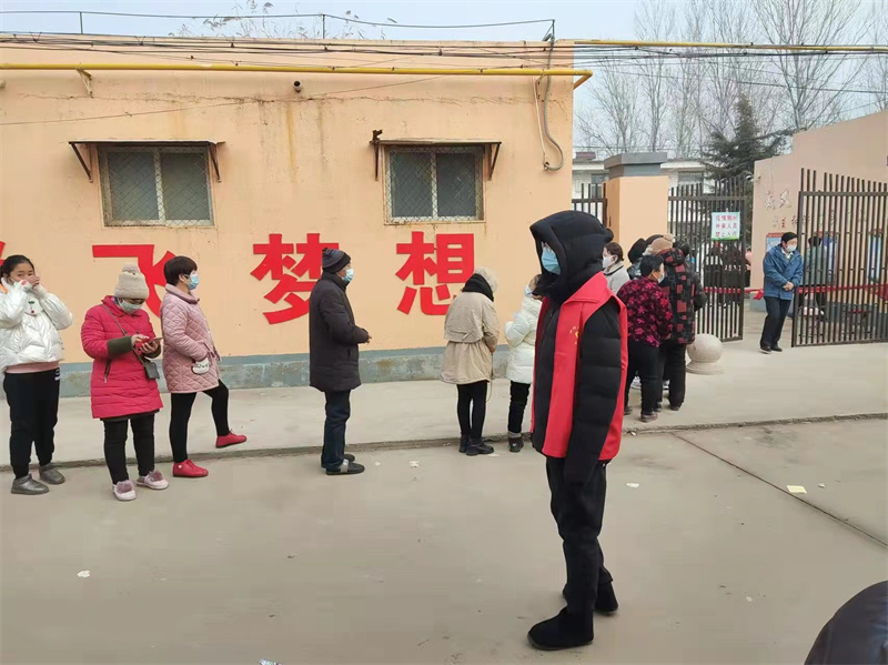 2019级软件工程本科1班李占科的主要工作是在核酸检测现场维持秩序。他说:“原本以为这个年会过得有滋有味,没想到禹州的疫情来势汹汹,甚至在全市范围内开展了大规模核酸检测,我很荣幸能够成为一名疫情防控志愿者,与医护人员一起冒着严寒共同攻克这场难关。今年年头下了第一场大雪,都说‘瑞雪兆丰年’,我相信疫情一定会很快过去,加油禹州!同时,感谢那些前来禹州支援的最可爱的人们,感谢你们为禹州送来温暖!”