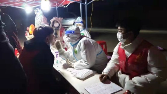 2021级金融学本科3班秦丹妮加入了大学生志愿者联盟队伍,主要负责核酸采集、人员名单登记、信息手录。她说:“数不清的核酸试管、肿胀的双眼、冰凉的手脚……当看到凌晨五点的雾气消散,志愿者的口罩浸透水珠,经过六个小时的志愿服务,一切工作都开展得十分顺利,感觉很有成就感。‘疫情挡不住温情!’希望在疫情期间能够力所能及帮助家乡,全民抗疫,共渡难关!”