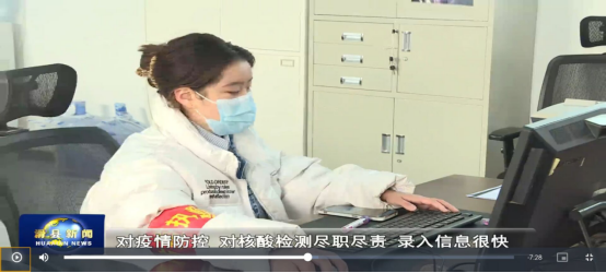 2021级互联网金融本科2班高璐璐在得知社区开展核酸检测工作需要志愿者帮忙时,主动报名并积极配合工作。她主要负责登记人员名单,输入基本信息,维持核酸检测现场秩序等工作。她说:“在所有医护人员和志愿者的努力以及广大群众的积极配合下,在一天半的时间里,我们社区完成了一轮全员核酸检测。这次志愿活动让我学到了很多东西,也收获了很多,以后有志愿活动我也会积极参与!”