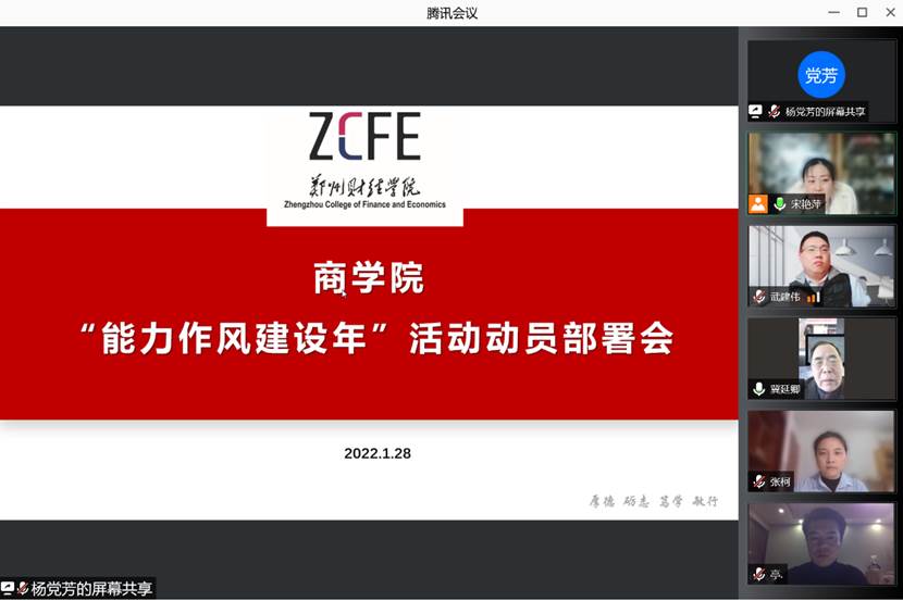 1月28日上午,商学院召开“能力作风建设年”活动动员部署线上会议,院长冀延卿、党总支书记宋艳萍等学院领导及全体教职工参加此次会议。会议由党总支副书记李云亭主持。