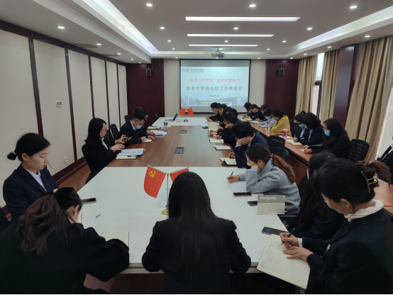 为落实新学期各项工作安排,加强班主任队伍建设,强化班级管理,3月12日中午,教育学院在德正楼608会议室召开班主任工作推进会,教育学院相关领导、全体辅导员及班主任参加会议,会议由学院团总支书记崔灿主持。