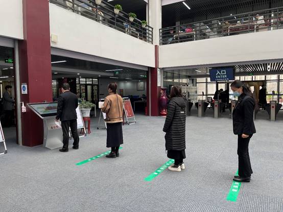 会后,所有三级网格长在图书馆二楼进行了疫情防控应急演练,模拟了入馆时发现体温异常读者和馆内发现体温异常读者两种突发情况的处理方法。