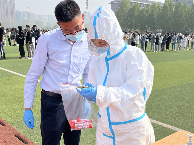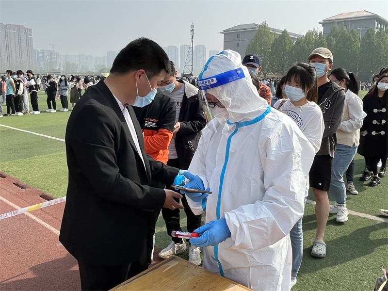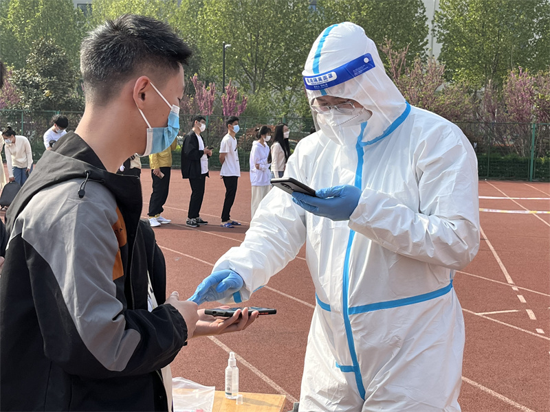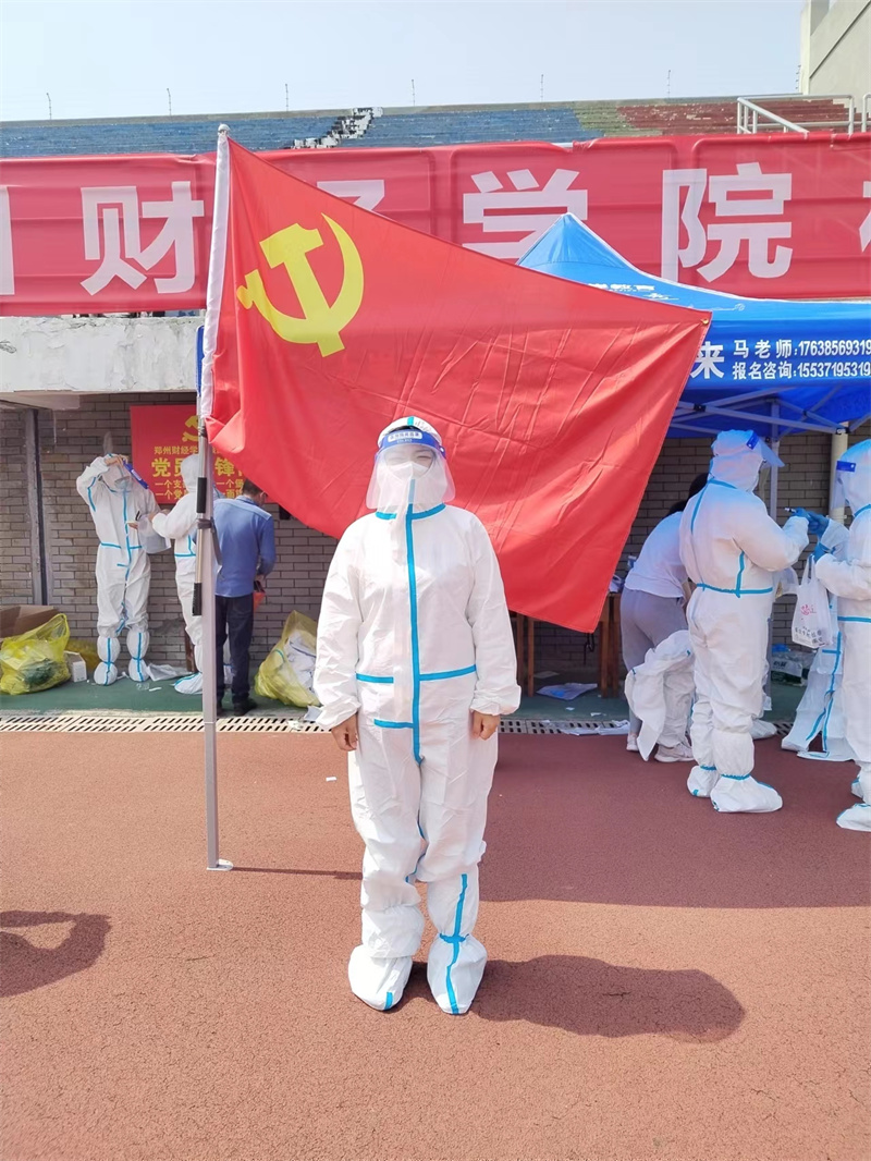 近期疫情防控形势严峻复杂,会计学院党总支主动出击,切实压紧压实责任,把做好疫情防控工作作为检验“四个意识”和“两个维护”试金石,充分发挥基层党组织的战斗堡垒作用和党员先锋模范作用。4月7日至8日,会计学院党总支教工党员响应学校号召,领导干部带头、党员同志积极响应,主动投身到全员核酸检测志愿服务工作中,为坚决打赢疫情防控阻击战提供坚强政治保证。党总支书记温毓敏带领会计学院6名党员化身“大白”,他们操作规范、动作娴熟,确保了在校师生顺利完成核酸检测。室外近30度的高温,穿着防护服的“大白们”汗流浃背,但是他们从未停歇、毫不退缩,将责任扛在了肩上,用实际行动将鲜红的党旗插在了战疫一线,让党徽在疫情防控一线发出闪耀光芒。