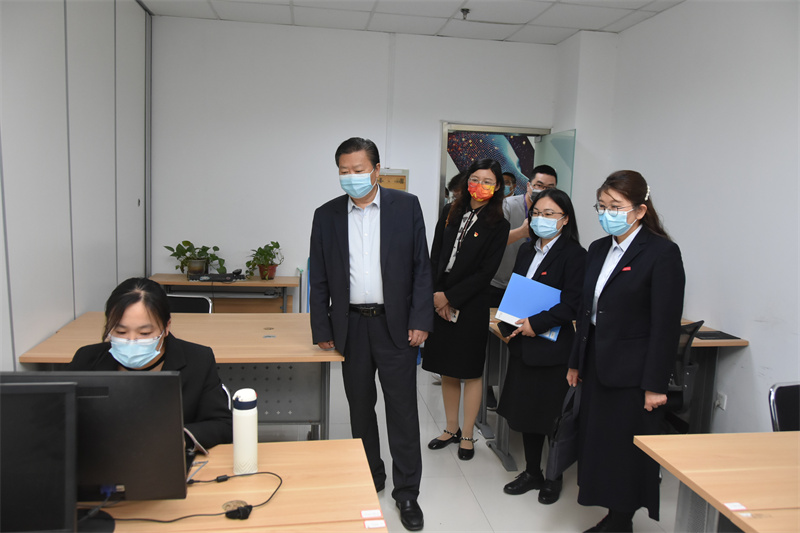 周清雷一行首先参观考察了八六三软件园区,重点参观了实习实训及人才培养基地,并考察了信息工程学院2022级毕业生线上集中实训授课的情况。