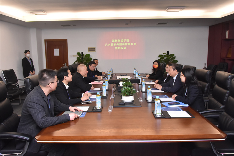 参观结束后,双方领导班子召开座谈交流会。会上,八六三软件股份有限公司董事长翟为唐对周清雷一行表示热烈欢迎。他介绍了八六三软件的发展历程、目前经营状况及未来发展规划,希望能够与学校开展紧密合作,加强校企融合的深度,在师资互换、特色班培养等方面达成合作共识,助力校企双方共同发展。