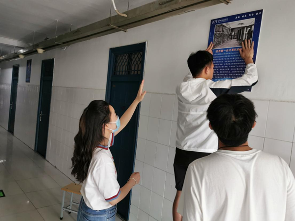 信息工程学院师生共同悬挂文化墙展板