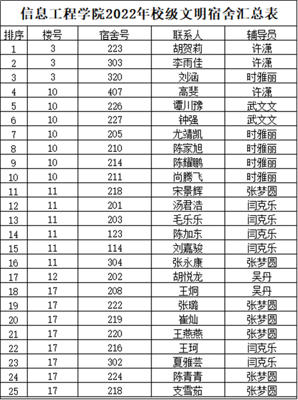 校级“文明宿舍”名单