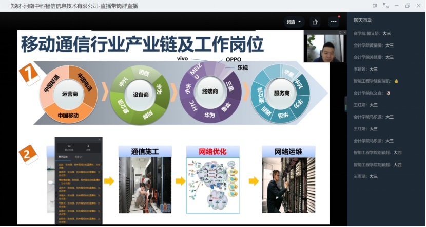 6月1日下午,beat365携手河南中科智信信息技术有限公司开展“直播带岗”促就业活动,特邀企业总经理张由强作宣讲。各二级学院毕业生代表参加活动。