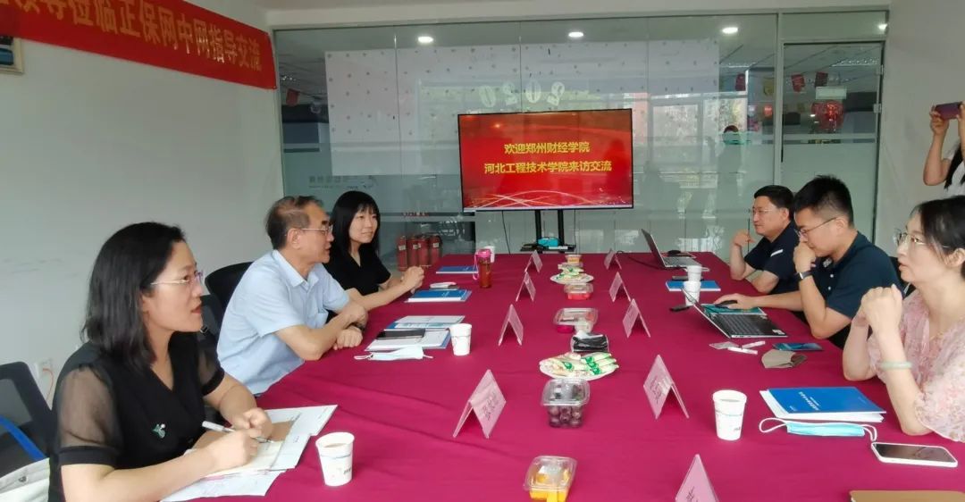 在正保网中网华北区总经理季金、河南区域经理钱宁的陪同下,管洲一行参观了公司规模及环境设施。随后进行座谈交流,季金对管洲一行的到来表示欢迎和感谢,并详细介绍了公司的发展历程、人才及产学研需求、校企合作情况,希望双方能够在原有的合作基础上进一步探索深化,形成可持续推进的产学研合作模式,将多层次、多形式的合作愿景落地落实,打造校企合作典范。
