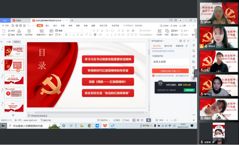 11月22日,教工党支部以“弘扬红旗渠精神,勇担育英才使命”为主题召开了专题组织生活会。学院党总支书记袁清同志以普通党员身份参会。她表示,“自力更生、艰苦创业、团结协作、无私奉献”的红旗渠精神是一座丰碑,历久弥新,值得我们认真学习。在学校迎评工作的关键期,我们一是要坚定理想信念,在教书育人中把牢政治方向。二是要树立高度的责任心和担当精神,弘扬正气。三是要把习近平总书记的讲话精神转化为政治责任,将红旗渠精神扎根实践,结合学校的发展及工作实际,涵养立德树人前行力量。