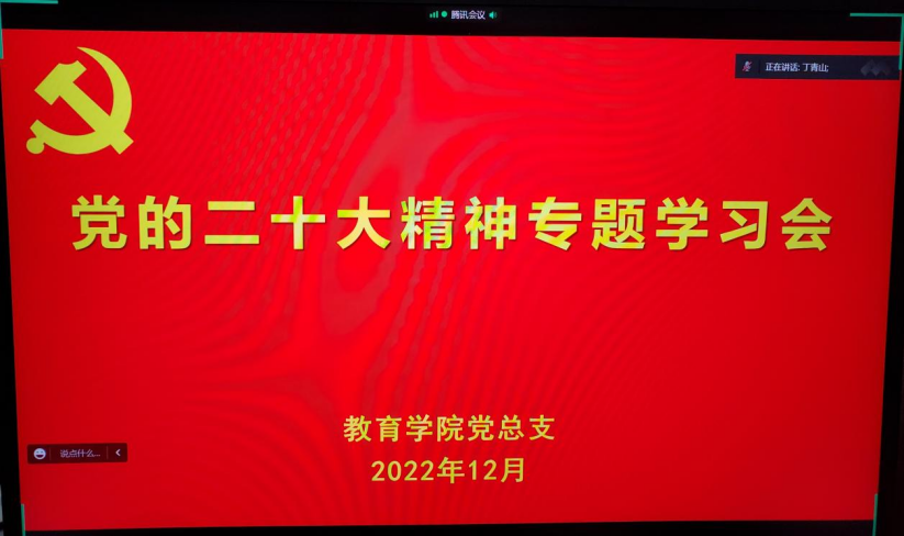 12月15日,教育学院党总支召开理论学习中心组学习 (扩大)会议,专题学习党的二十大精神。全体总支委员及各支部书记参会。会议由党总支书记丁青山主持。