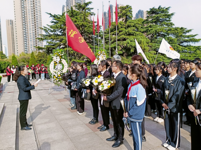 学生代表代莹、赵晨艺分别进行发言,深刻缅怀革命烈士的丰功伟绩,并表示将坚定不移跟党走,踔厉奋发,笃行不怠。