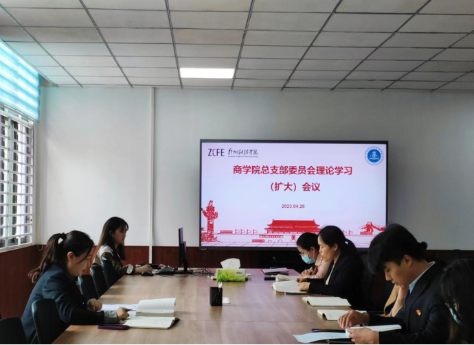 4月28日中午,商学院党总支在F楼202会议室召开习近平新时代中国特色社会主义思想理论学习(扩大)会议,商学院党总支委员会全体成员及各支部书记参加会议。会议由党总支书记宋艳萍主持。