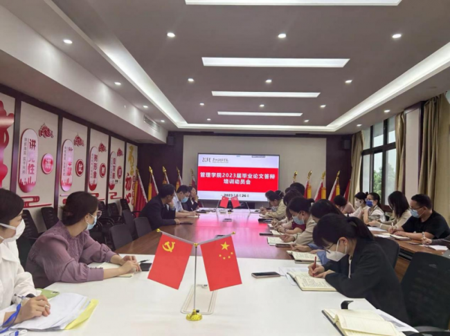 答辩前,管理学院召开论文答辩培训动员会,答辩评委及答辩秘书参会。管理学院院长孙恒有对答辩提出总体要求,他强调全体答辩评委要严格聚焦论文质量,严肃工作纪律,合理把控学生陈述,落实答辩组集体智慧,综合评价答辩结果。管理学院副院长张雅具体解读答辩当天日程,对于往届答辩突出的细节工作提出明确要求,强调答辩事项,把控论文质量。