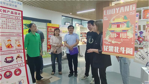 座谈会结束之后,王莹总经理一行参观考察了艺术设计学院毕业设计作品展,任留柱院长结合学生作品介绍了艺术设计学院人才培养的思路、举措、成果与特色,表达了希望与园区相关优质企业在应用型人才培养方面深化合作的意愿与思路。