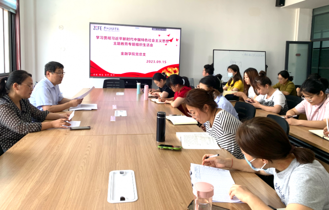 9月15日,根据校党委统一部署,金融学院在F508会议室召开了学习贯彻习近平新时代中国特色社会主义思想专题组织生活会。教工党支部全体党员参会,金融学院党总支书记杨贵仓和党总支副书记刘冠勤以普通党员身份参加了本次组织生活会。