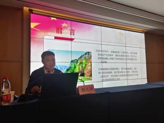 第三场报告主题为“弘扬红旗渠精神,做新时代的奋斗者”,河南红旗渠(集团)有限责任公司董事长郭文强先生应邀作报告。他用通俗易懂的语言介绍了红旗渠集团的历史与现状,深刻解读了“自力更生、艰苦创业、团结协作、无私奉献”的红旗渠精神内涵。他希望全体教师在实际工作中可以践行红旗渠精神,加强师德师风建设,在人民教育工作中自信自强、守正创新,踔厉奋发、勇毅前行。