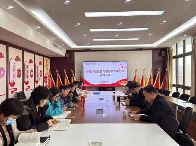 为深入学习贯彻习近平新时代中国特色社会主义思想,加强基层党组织理论武装,管理学院党总支坚持读原著、学原文、悟原理,通过采取领读、轮读等多种形式深入开展中心组学习。12月19日,管理学院在C608会议室召开了党总支理论学习中心组学习会议,校党委副书记董学力,宣传部长杨建伟一行到会巡听旁听并进行指导。本次会议由管理学院党总支书记袁清主持。