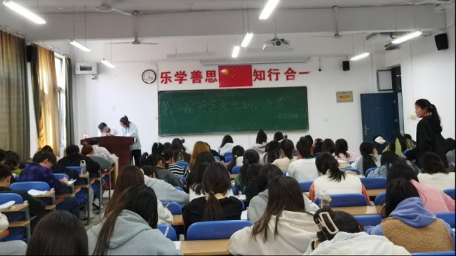 为弘扬传统茶文化,增加大学生对茶文化的了解,做茶文化的继承者和传播者,茶艺社于3月19日下午在J7-407、409教室开展了“第一届茶艺文化知识竞赛”主题活动。活动中同学们认真作答茶艺文化知识竞赛相关问题,赛后工作人员为获奖同学颁发荣誉证书,此次活动不仅增强了同学们对茶艺文化知识的了解,也丰富了校园文化活动的内容。