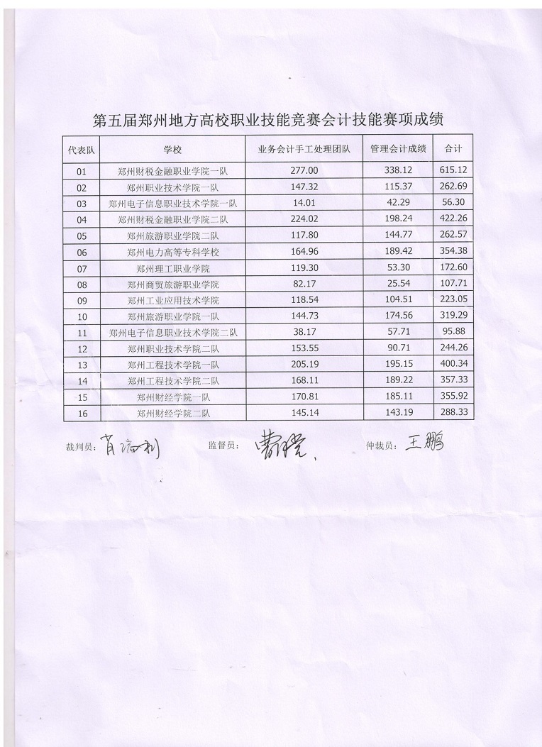 郑州市第五届地方高校职业技能竞赛会计赛项成绩已出,现公示如下: