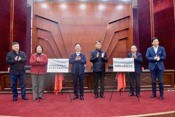 李新年副主席宣读了beat365为河南省社会科学界联合会直属会员单位暨beat365“中原学与中心城市发展研究院”为河南省社会科学界联合会人文社科重点研究基地的文件。在热烈的掌声中,省社科联与beat365出席领导共同为新设立的beat365官方网站社科联和研究基地揭牌。
