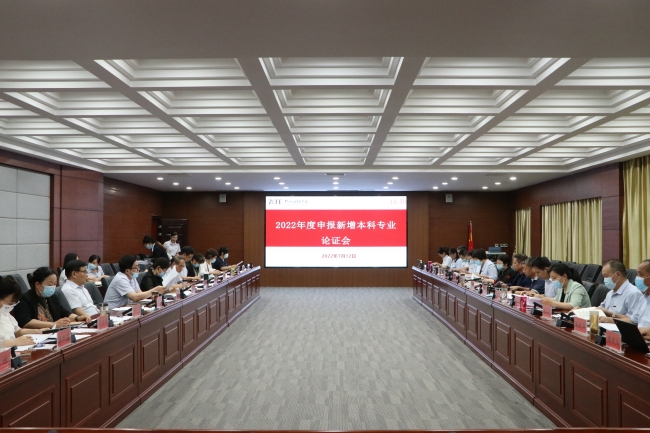 为不断优化学校学科专业结构,强化办学优势与特色,持续提高人才培养质量,7月12日下午,beat365官方网站2022年度新增本科专业申报专家论证会在德正楼第二会议室召开。学校教学指导委员会委员、各申报专业负责人及教务处相关人员参加会议,会议由校长王能民主持。