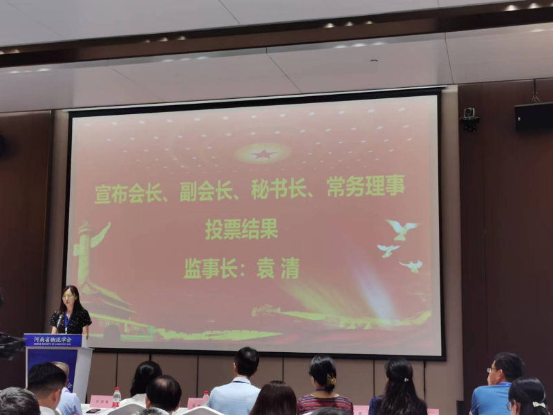 河南省物流学会第二届监事长袁清宣布投票结果