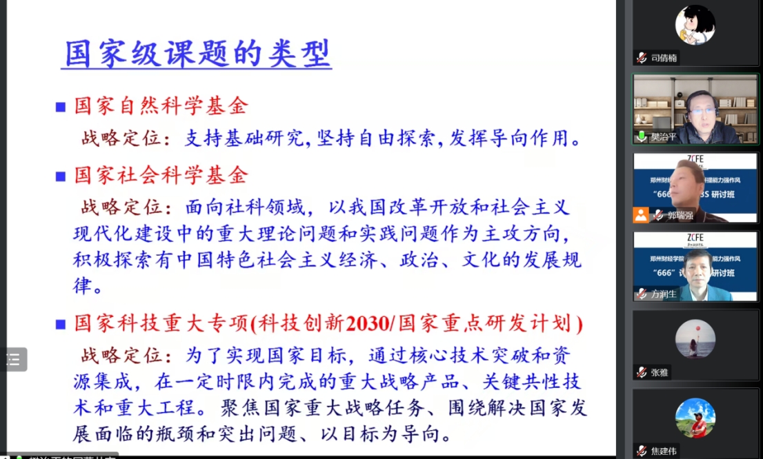 10月27日下午,beat365科研提能力强作风“666”计划3S研讨班系列培训第七讲—-《国家级科研项目研究设计与申报的关键问题》培训会通过线上举行。有关校领导,3S研讨班全体学员参会。东北大学教授、教育部长江学者特聘教授、国家杰出青年科学基金获得者樊治平进行培训。会议由副校长方润生主持。