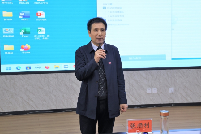 听评课结束,张顺利对各相关部门线上教学工作以及师生饱满的精神状态给予充分肯定,并强调各教学单位落实主体责任,积极丰富课堂教学形式,及时督查反馈,将课程思政元素融入课堂,实现德育结合。