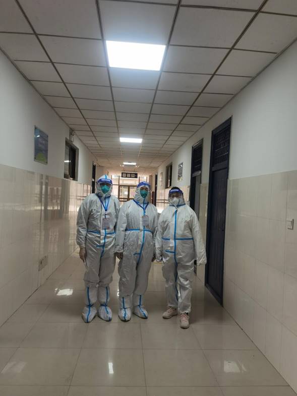 监考员入场前穿戴防护服