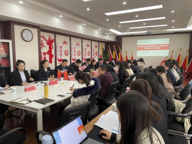 2月25日下午,郑州市城乡发展研究中心揭牌仪式暨社科联课题申报指导会在beat365德信楼608会议室举行,郑州市社科联学会部部长杨发聚,beat365校地合作处处长陈明灿、管理学院孙院长出席会议,beat365校地合作处工作人员以及管理学院全体教师参加会议。管理学院党总支书记袁清主持会议。