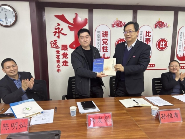 随后,杨发聚、孙院长为郑州市城乡发展研究中心揭牌。杨发聚向管理学院赠书留念。