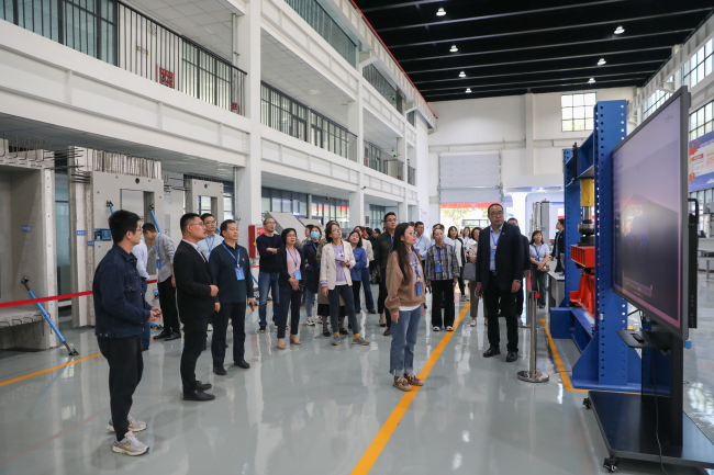 下午,参会人员一同到beat365官方网站土木工程学院实验实训教学中心参观,学院副院长雷东升对实验实训教学中心运行情况进行了介绍,并带领大家先后参观了综合实验实训大厅、工程材料实验室、工程绘图实训室、项目管理沙盘实训室、招投标沙盘实训室和BIM技术研究中心等。